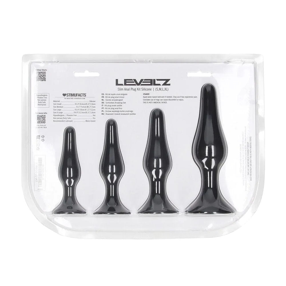 LEVELZ Slim Silicone Anal Plug Kit - Set of 4 Sizes - Black