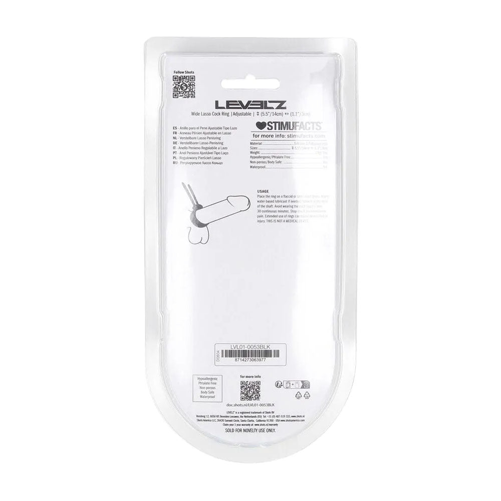 LEVELZ Wide Adjustable Silicone Lasso Cock Ring - Black