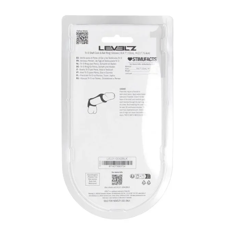 This Tri-O design from the LEVELZ collection delivers structured support and confident control with three connected loops: one for the shaft, one for the cock and balls, and an additional stabilising ring for a secure, full-package fit. The harness-style layout increases pressure and helps enhance staying power, while also creating a bold visual profile.